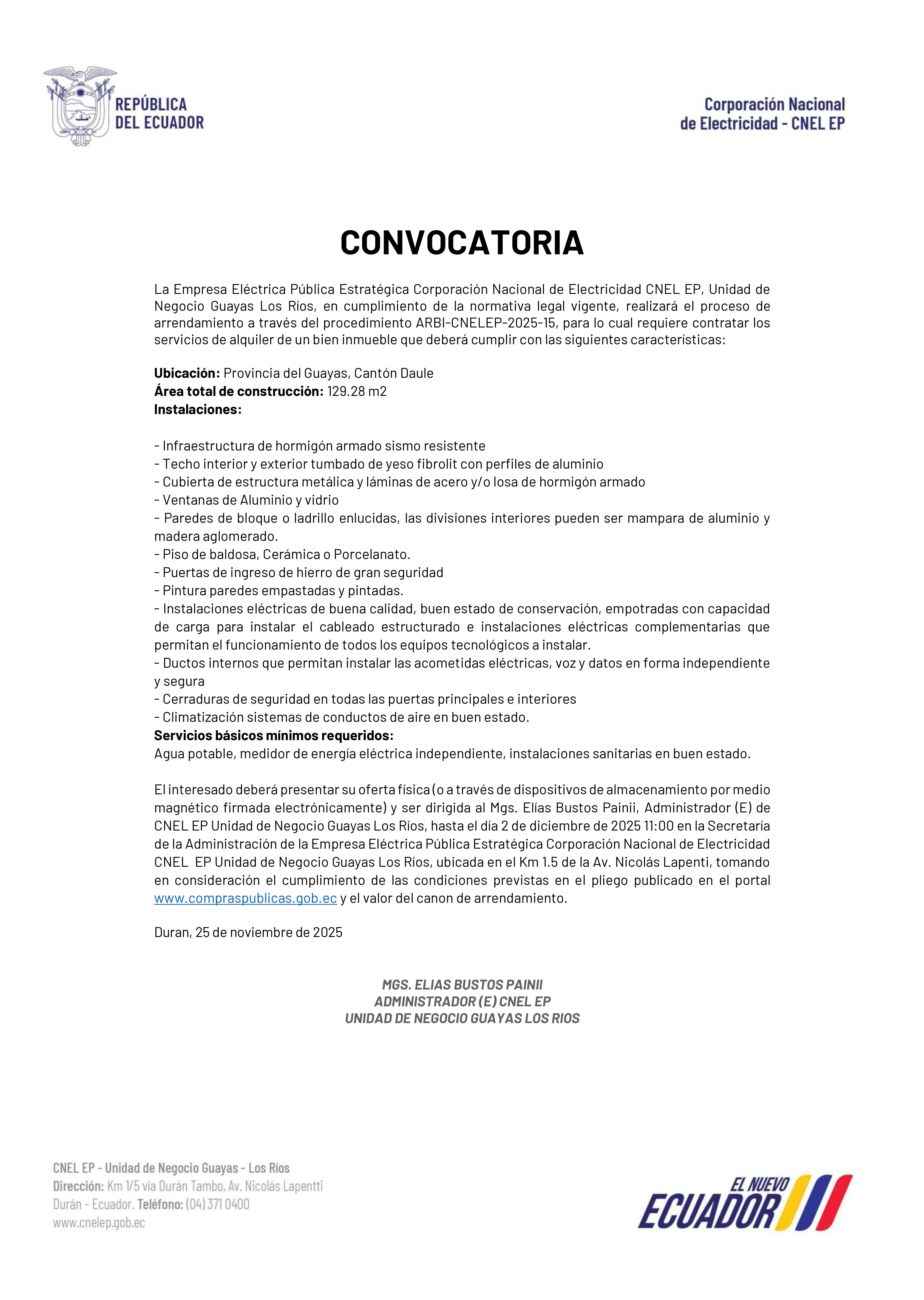 Convocatoria procedimiento ARBI-CNELEP-2025-15