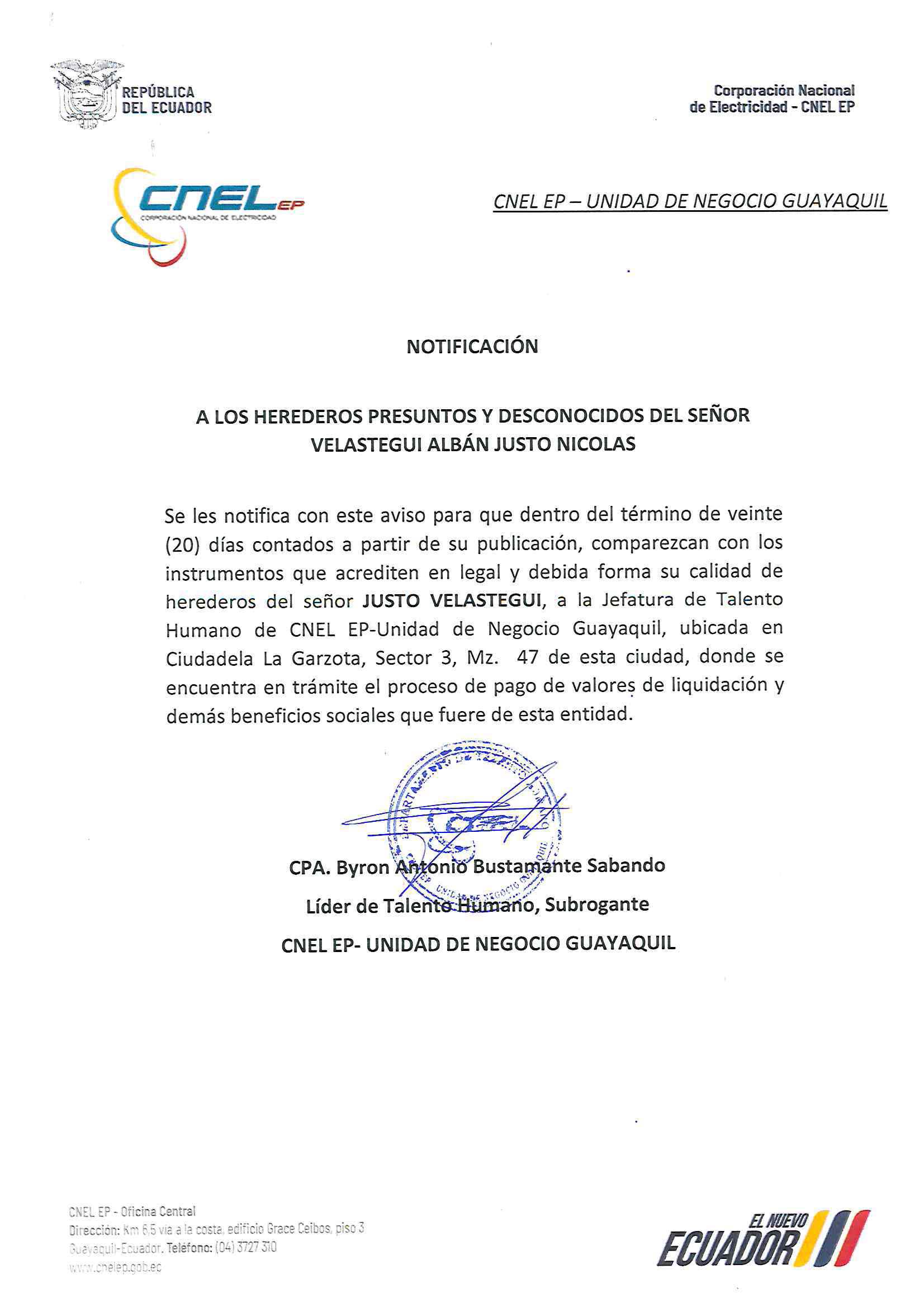 PUBLICACIÓN PROCESO POST MORTEM – VELASTEGUI ALBAN JUSTO NICOLAS