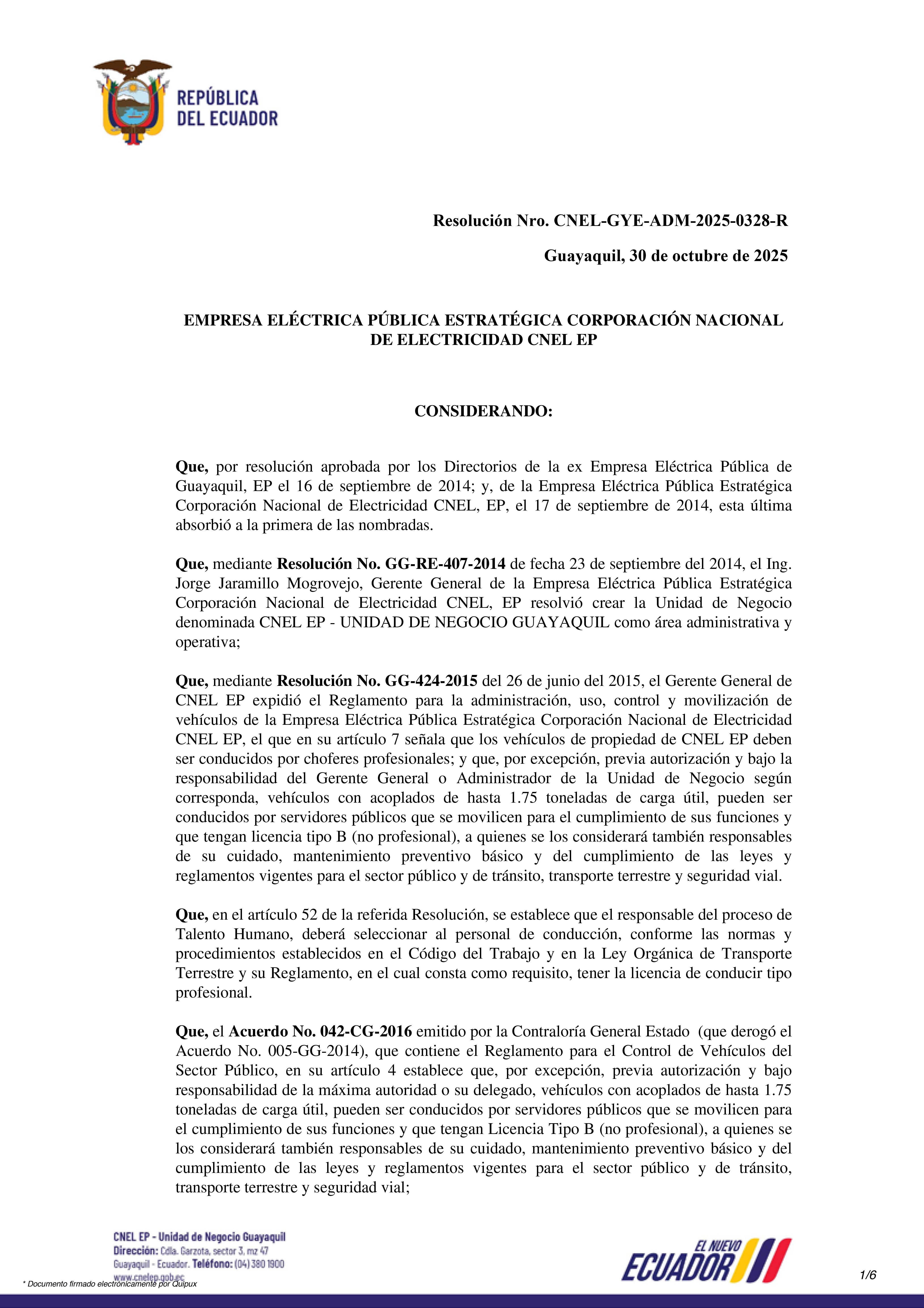 Resolución Nro. CNEL-GYE-ADM-2025-0328-R