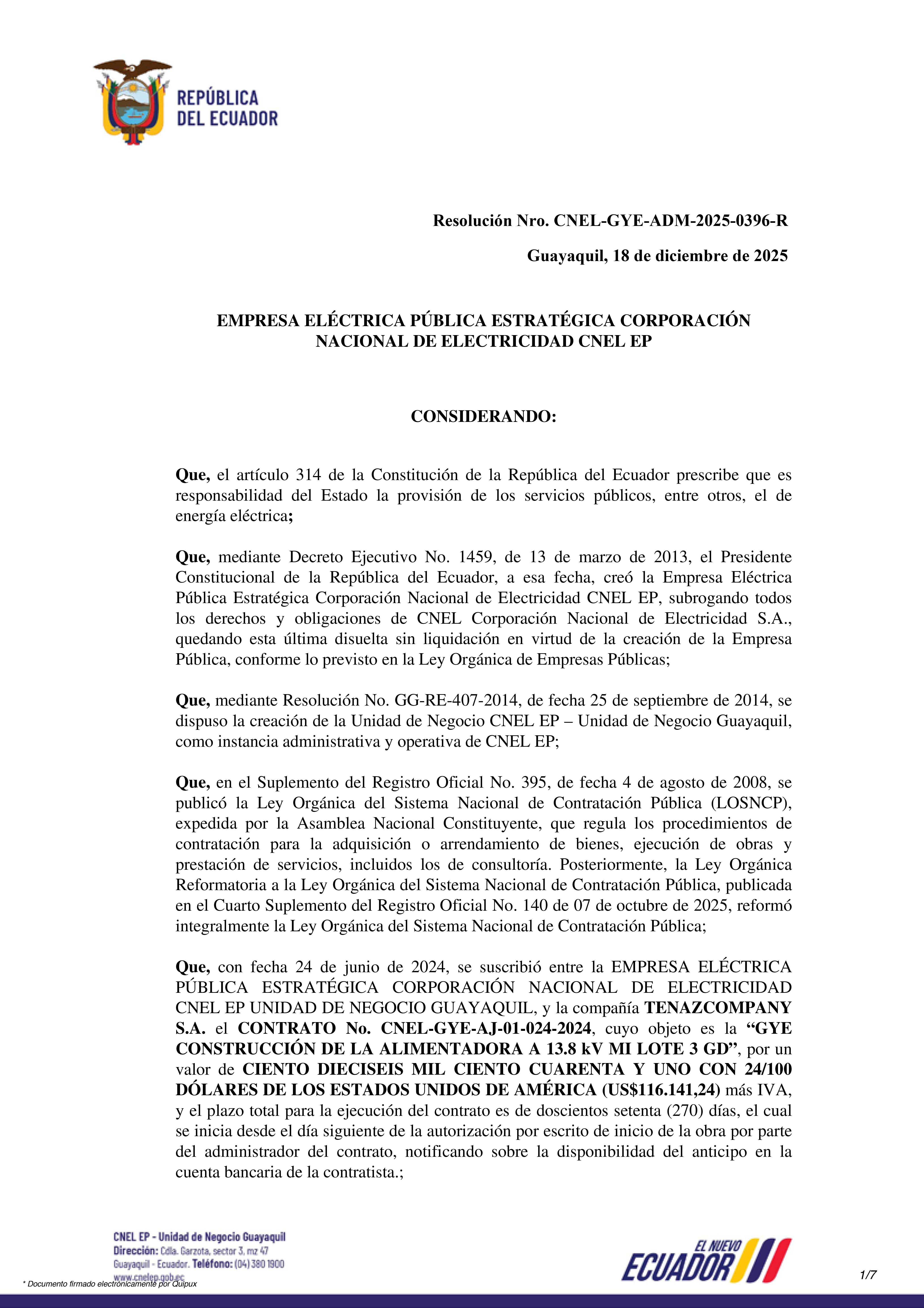 Resolución Nro. CNEL-GYE-ADM-2025-0396-R